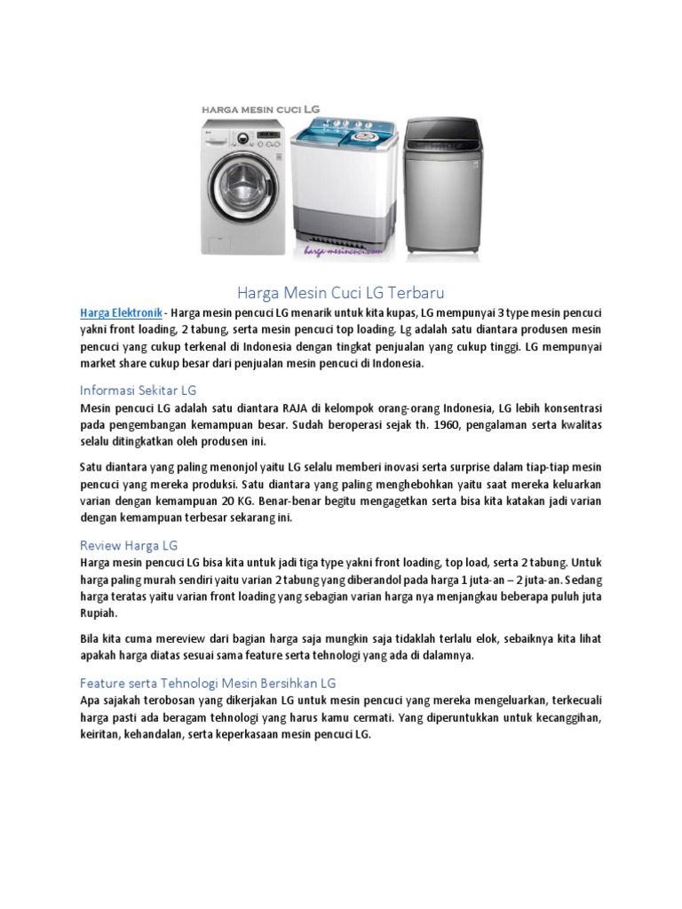 Informasi Harga Jual Mesin Cuci Lg Terbaru Termurah Dan Terlaris